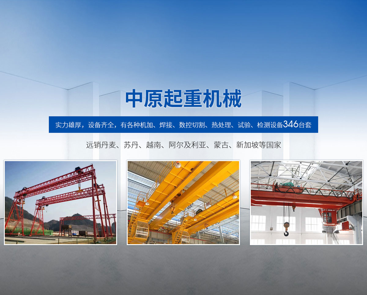 新鄉(xiāng)市中原起重機(jī)械有限公司成立于2000年,地處中原,輻射全國(guó)28個(gè)省市自治區(qū),設(shè)外埠經(jīng)銷處、辦事處268個(gè)。產(chǎn)品行銷工礦、建材、化工、冶金、電力、交通、鐵路、油田、港口等各個(gè)行業(yè)。遠(yuǎn)銷丹麥、蘇丹、越南、阿爾及利亞、蒙古、新加坡等國(guó)家。  公司實(shí)力雄厚,設(shè)備齊全,有各種機(jī)加、焊接、數(shù)控切割、熱處理、試驗(yàn)、檢測(cè)設(shè)備7臺(tái);有機(jī)加工、熱處理、單、雙梁橋門機(jī)生產(chǎn)、檢測(cè)、安裝等9個(gè)車間,研究中心、運(yùn)輸公司、安裝維修服務(wù)公司等機(jī)構(gòu),?  主要產(chǎn)品有:LD型1~20噸電動(dòng)單梁起重機(jī)系列產(chǎn)品;5~600噸通用橋式、門式、冶金、上旋轉(zhuǎn)下旋轉(zhuǎn)電磁吊、絕緣、抓斗、防爆起重機(jī)系列產(chǎn)品;LH3~100噸葫蘆雙梁系列產(chǎn)品;MH5~32噸葫蘆門式系列產(chǎn)品;0.5~40噸CD1、MD1鋼絲繩電葫蘆系列產(chǎn)品;HS1型0.5~20噸手動(dòng)葫蘆系列產(chǎn)品;0.5~10噸環(huán)鏈電動(dòng)葫蘆系列;0.5~40噸彎道電動(dòng)葫蘆系列產(chǎn)品;裝卸橋、造船門機(jī)、架橋機(jī)、鑄造吊和水電大噸位起重機(jī)系列產(chǎn)品。  公司建立了強(qiáng)有力的質(zhì)量保證體系和生產(chǎn)過程的質(zhì)量控制系統(tǒng),嚴(yán)格執(zhí)行國(guó)家設(shè)計(jì)、生產(chǎn)標(biāo)準(zhǔn),有嚴(yán)格的生產(chǎn)工藝過程和標(biāo)準(zhǔn),嚴(yán)格的檢驗(yàn)、檢測(cè)標(biāo)準(zhǔn)和手段。